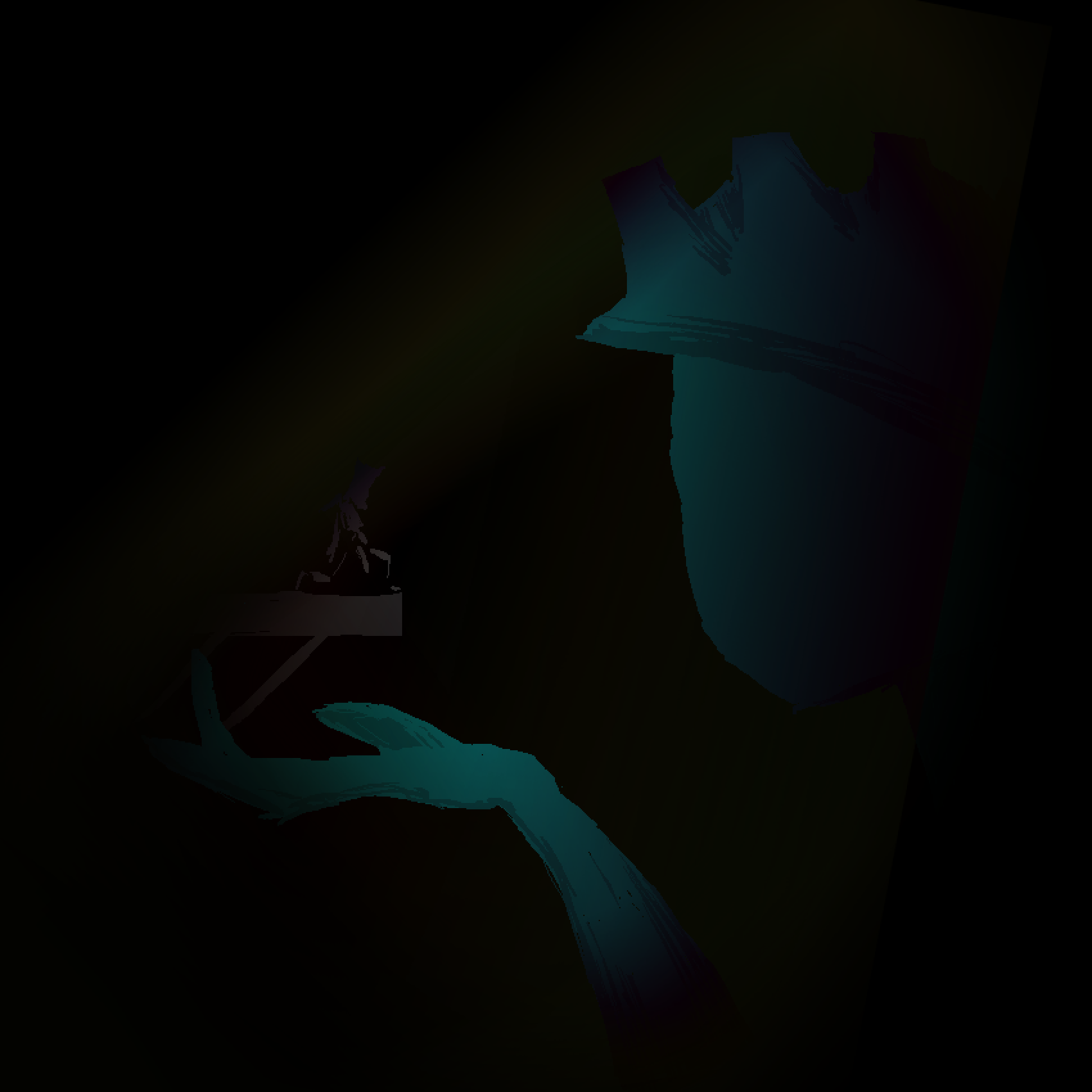 Hahmo laskeutui polvilleen, kenties rukoukseen. Alttari oli Nimdan kauan sitten häiritty leposija, eikä enää kätkenyt ainuttakaan salaisuutta. Sen takana oli lasimaalaus, jossa säilyi väreistä ainoastaan sininen. Äiti Athin käsi tarjosi mieltä ja sielua ontoille kuorille, jotka olivat kömpineet esiin Suuren hengen alkumerestä. Näitä kaikkia ympäröivät olennot, joita ei ollut olemassa.
