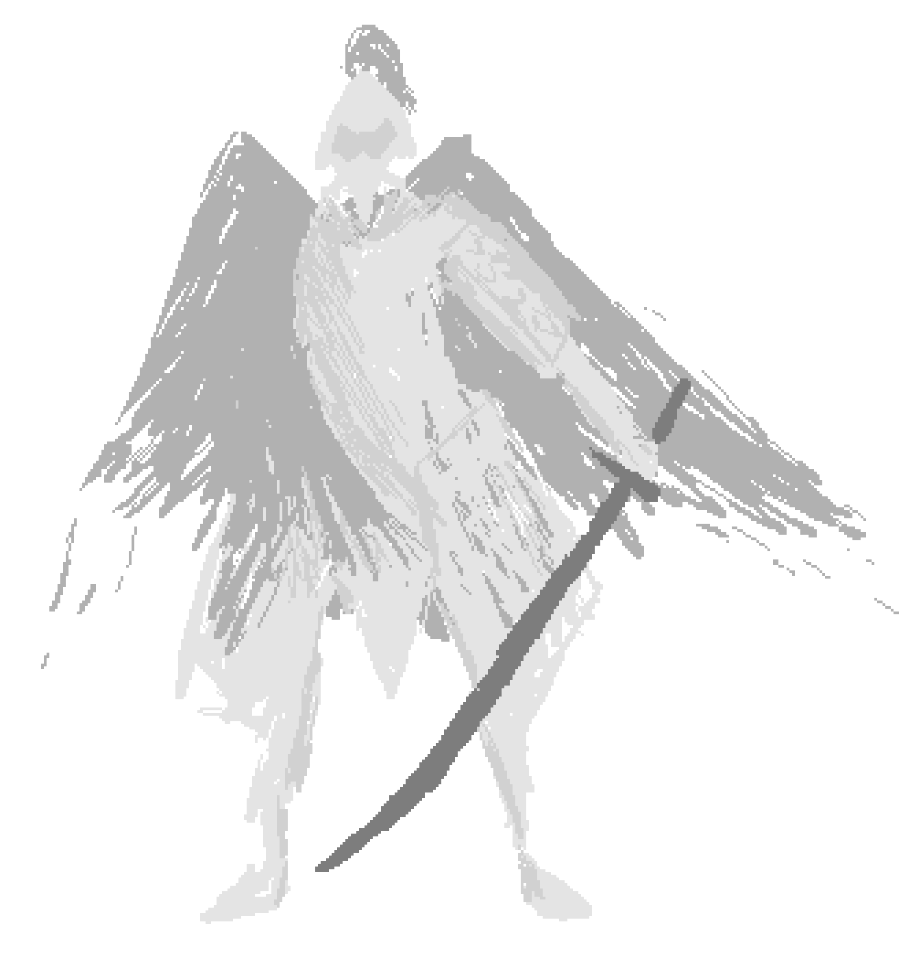 Enkeli, joka käänsi aihioiden peittämän selkänsä.